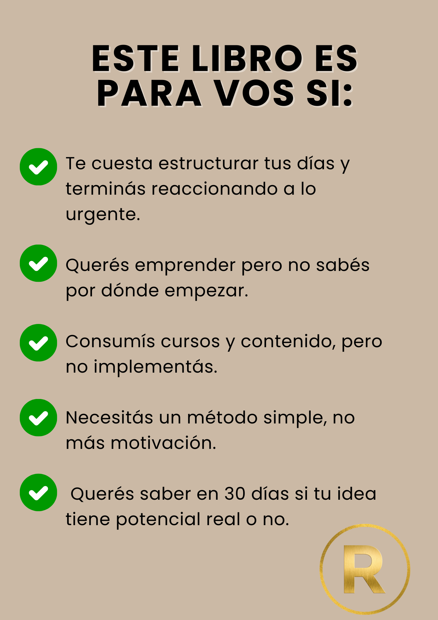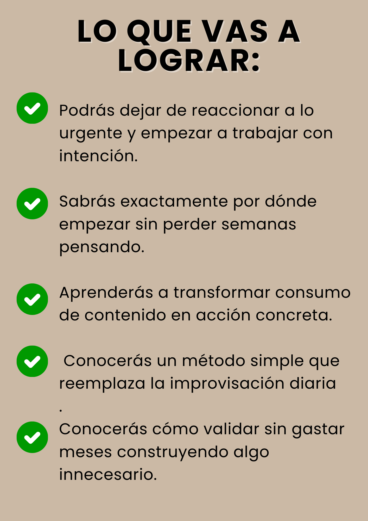 Si aplicas el método, vas a tener una dirección clara, un objetivo medible y datos reales para saber si tu idea funciona o necesita ajustes.